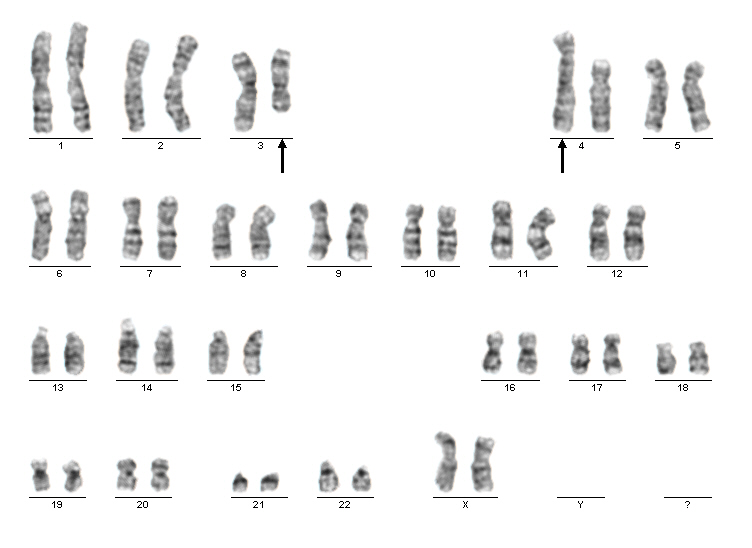 Kiegyensúlyozott transzlokáció a 3-as és 4es kromoszóma között